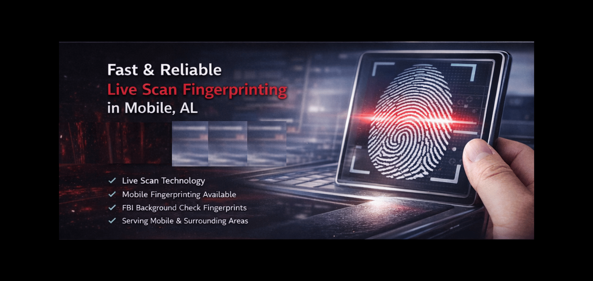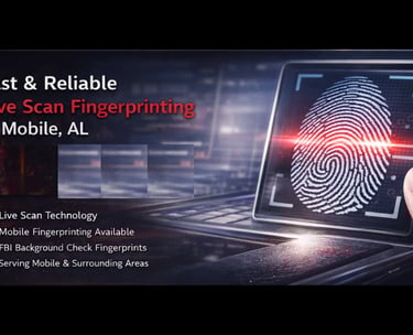 Providing fingerprinting services to Mobile, Daphne, Spanish Fort, Pascagoula and surrounding areas.